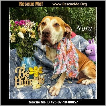 Nora was brought in as a stray. She's approximately 5-7 years old and weighs 57 lbs. It looks as though she was