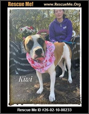 Kiwi's owner could no longer take care of her. She's just over one year-old and weighs 72 pounds. She was said to